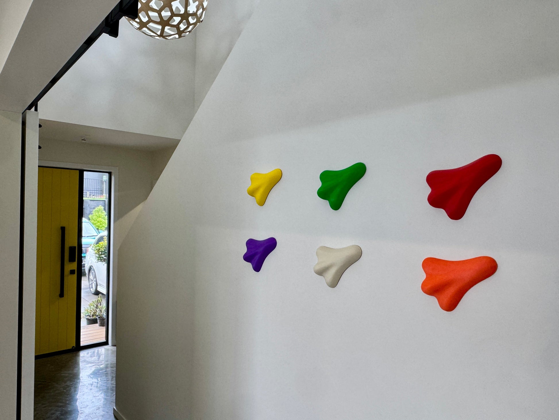 Each Jetplane measures 250mm x 180mm x 55mm and can sit flat on a shelf/desk, or hang on a small nail or screw (there are three hanger holes to ensure you can hang at an angle that suits you, or useĀ 3M Command Picture Hangers (small).